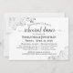 This beautiful rehearsal dinner invitation is both simple and elegant. It features a black text on a white background with lacy silver faux foil frills or filigree in the corners. It has information on both the wedding rehearsal as well as the celebratory dinner that follows. Perfect for keeping the bridal party informed about all of the pre-wedding festivities.