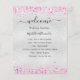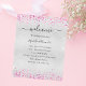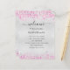 A modern, elegant wedding program, timeline. Faux silver looking background decorated with pink coloured confetti. Personalise and add your names and wedding details. Black coloured letters.