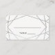 These modern wedding escort cards feature a silver geometric design, with a line for your guest's name and table number, on a white background. The reverse of the card is black.
