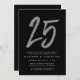 Celebrate 25 years of marriage (or anything else!) with this black and faux silver glitter invitation featuring a large stylised 25
