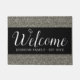 Welcome doormats with a classy silver glitter print . Personalize with family name and established year.