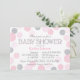 Silver Glitter and Pink Scattered Dots Baby Shower Invitation