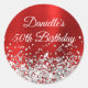 Silver Glitter and Red Foil 50th Birthday Classic Round Sticker