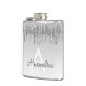 Silver modern ombre Faux dripping Glitter and Sparkle Elegant Monogram Flask. This Flask can be customised to include your initial and first name. The Flask is perfect for a birthday or bachelorette party celebration.
