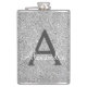 Silver Glitter and Sparkle Monogram Initial Hip Flask