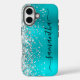 Silver Glitter Aqua Blue Metallic Girly Signature Case-Mate iPhone Case