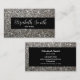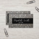 These elegant business cards feature a silver glitter. Your name appears in trendy handwritten script typography. There is also room to include your social media information on the back.