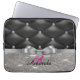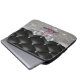 The sleeve is made of nice feeling material and seems very durable. I'm not sure how easy it'll be to clean, but the construction seems sound and the fabric is quick thick. I also like the double zipper. The printing is lovely and appears durable. The white on black contrast is nice, and the design very elegant.