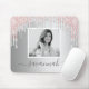 A trendy faux silver looking background decorated with blush pink and faux silver glitter drips, paint dripping look. Personalise and add your name written with large trendy hand lettered style script with swashes. Grey letters. To keep the swashes only delete the sample name, leave the spaces or emoji's in front and after the name.  Add your own photo.