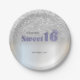 Silver Glitter Bokeh Sweet 16 Crown Paper Plate