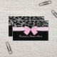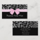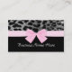 This is a trendy business card. It has black and silver glitter cheetah pattern on the top. There'a a pretty pink ribbon with a bow across the centre of the card. There's a black bottom where you personalise with business name.. Check out the many other products, designs and colours in our store.
