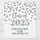 Graduation party custom wine bottle labels class of 2025 with silver glitter pattern confetti.