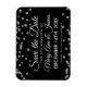 Elegant wedding "Save The Date" design with Silver Faux Glitter Confetti Black and custom names and date text.