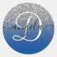 Silver Glitter Deep Blue Ombre Monogrammed Classic Round Sticker