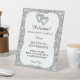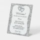 Silver Glitter Diamond Hearts Wedding Safety Pedestal Sign