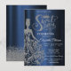 Silver Glitter Dress,Diamonds Navy Blue Sweet 16 Invitation