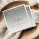 These chic, elegant 80th birthday party paper napkins feature a sparkly silver faux glitter drip border and silver ombre background. Personalise them with the guest of honour's name in grey handwriting script, with her birthday and date below in sans serif font.