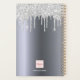 A faux silver metallic looking background with elegant faux silver glitter drips, paint drip look. Template for a year. Personalise and add a name. The name is written in white with a large modern hand lettered style script. Perfect for school, work or organising your personal/family life. To keep the swashes only delete the sample name, leave the spaces or emoji's in front and after the name.