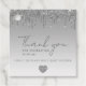 Make your baby shower gifts shine with this silver glitter-look thank you tag! Featuring sparkling faux glitter drips and a soft grey ombré background, this modern design adds a chic, personalised touch to party favours. The elegant script and editable name make it perfect for celebrating a stylish mum-to-be. Ideal for glam baby showers, winter themes, or neutral palettes, this tag ties beautifully to gift bags, boxes, or treat packages.