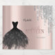 Elegant black dress, and silver glitter drips on a rose gold background.