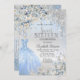 Silver Glitter Drips,Blue Dress Flowers Sweet 16 Invitation