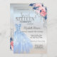 Silver Glitter Drips,Blue Dress Flowers Sweet 16 Invitation