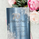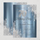 A modern, chic, and glamourous with silver glitter drips on a blue metallic background.