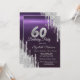 Silver Glitter Drips Dark Purple 60th Birthday Invitation