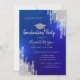 Silver Glitter Drips Grad Cap Blue Graduation Invitation