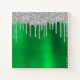 Girly faux sparkly dripping silver glitter over a faux bright green brushed metal style foil digital art graphic.