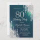 Silver Glitter Drips Green 80th Birthday Invitation