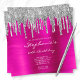 Silver Glitter Drips Hot Pink Foil BirthdayDesigned by Angela M