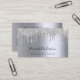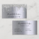 An elegant and glamourous business card on a faux silver looking background decorated with faux silver glitter drip on front. Elegant black hand lettered style script. Templates for Your name, title, phone number, mail and website address. The card is also available in our store with social media icons.