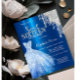Elegant blue dress and silver glitter drips on a metallic blue background.