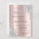 A modern, chic and glamourous invitation with glitter drips on a rose gold background.