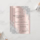 A modern, chic, and glamourous with silver glitter drips on a rose gold background.
