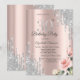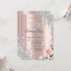 A modern, chic, and glamourous with silver glitter drips, roses on a rose gold background.