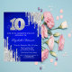 Silver Glitter Drips Royal Blue 10th Birthday Invitation