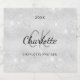 A faux silver metallic looking background. Decorated with faux glitter dust. Personalise and add a year your first name, monogram initials and full name.