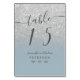 Silver glitter dusty blue script calligraphy typography table number wedding party invitation .Perfect for a modern elegant wedding party.
