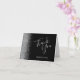 This elegant modern wedding thank you card features a border of silver faux glitter on a black background. The customisable text combines the words "Thank You" in silver grey handwriting script and the names of the bride and groom in italic font.