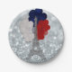 Silver Glitter Eiffel Tower Red White Blue Party Paper Plate