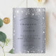 A modern, elegant and minimalist wedding invitation. Faux silver metallic looking background decorated with faux glitter dust. Personalise and add your names and wedding details. Black coloured letters.