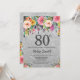 Silver Glitter Floral 80th Birthday Invitation for Women. Watercolor Floral Flower. Silver Glitter Background. Pink, Yellow, Orange, Purple Flower. Adult Birthday. 13th 15th 16th 18th 20th 21st 30th 40th 50th 60th 70th 80th 90th 100th, Any Ages. For further customisation, please click the "Customise it" button and use our design tool to modify this template.
