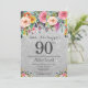 Silver Glitter Floral Surprise 90th Birthday Invitation
