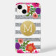 Silver Glitter, Flowers, Stripes, Gold Monogram Case-Mate iPhone Case