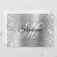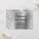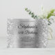 Decorative faux sparkly silver grey glitter graphics border the edges on both front and back.