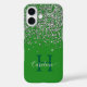Faux silver glitter and forest green Personalised with your name and monogram / initial. Mobile Phone iPhone Case.