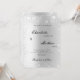 A modern, elegant and minimalist formal wedding invitation. Faux silver looking background decorated with faux glitter. Personalise and add your names and details. Black coloured letters. The first names are written with a modern hand lettered style script.