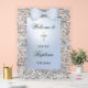 Silver Glitter Frame Blue Bow Baptism Welcome Acrylic Sign